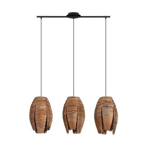 Eglo Suspension Mongu 1, lampe suspendue 3 flammes vintage, style africain boho, abat-jour en rotin et acier, lampe à manger, salon, naturel, noir, douille E27