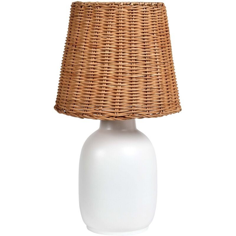 Lampe à Poser en Céramique avec Abat-Jour en Rotin Accessoire Salon Chambre Bureau Blanc Bartang
