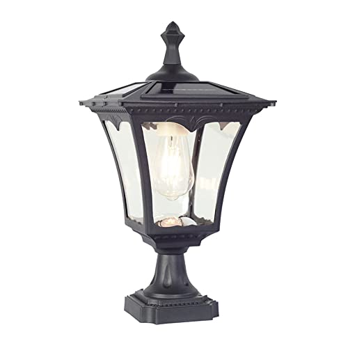 MODEBHD Lampe à pilier solaire 16,5 '' avec capuchon de poteau extérieur avec base de montage sur jetée, pilier imperméable de style simple européen, abat-jour en verre transparent, lampes de lanterne