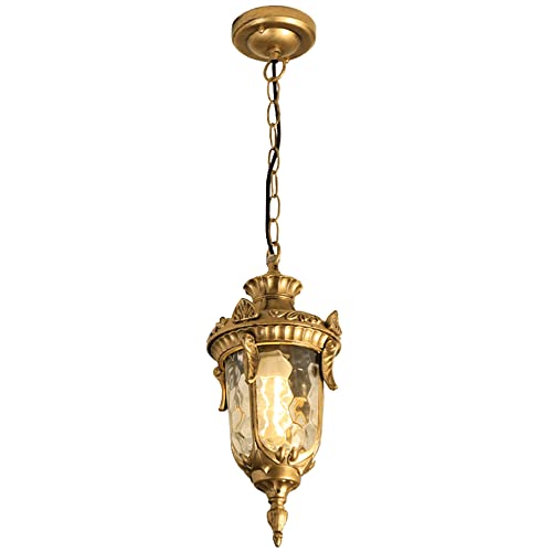 Mengjay Trade Lanterne Suspension Extérieure Design Classique Ancien en Métal couleur Noir/Or Patiné Abat-jour en Verre Transparent E27 Rétro Vintage Lampes Suspendues pour Jardin Patio Pavillon (Or)