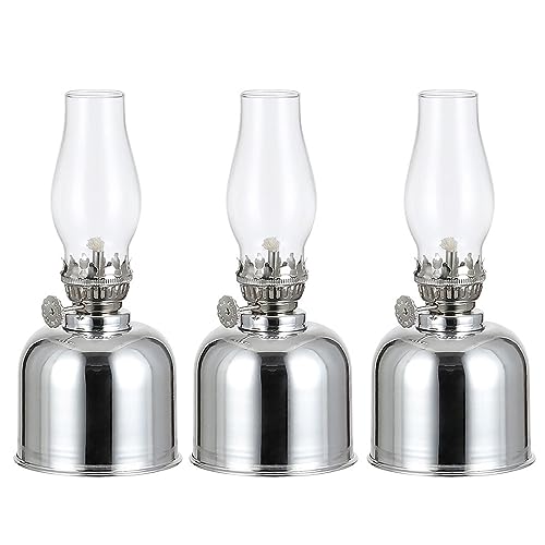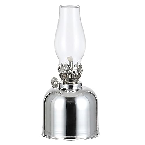 IBalody Lampe à pétrole Moderne en Argent avec Abat-Jour en Verre Transparent, Chandelier nostalgique, Ensembles complets de Lanterne à Huile, Lampe de Bureau, décoration pour Salle d'étude, Camping
