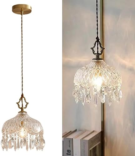 SIYANE Lampe suspendue vintage en cristal doré avec abat-jour en verre transparent, lustre en forme de goutte de pluie, lampe suspendue au plafond simple nordique pour cuisine, îlot, salle à manger, c