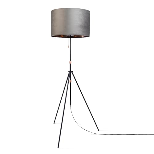 Paco Home Lampadaire Salon Régl. Hauteur 121,5 À 176,5 cm Interr. Tirette Trépied Abat-jour Velours Monochrome Câble Textile 2,5 m E27