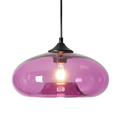 HJXDtech Suspension Luminaire Industriel Vintage avec Abat-Jour en Verre Soufflé 28cm - Lampe Suspendue Plafond E27 pour Cuisine, Salon & Salle à Manger (Violet)