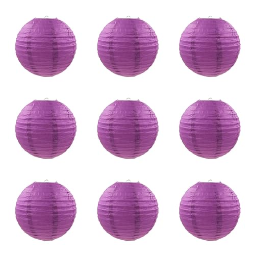 Surwin 12 Pièces Lanternes Papier Chinois, Lanternes en Papier à Suspendues, Boule Ronde Abat-Jour, Lanterne Decorative pour Intérieurs Extérieurs Mariages Anniversaires Fêtes (Violet)