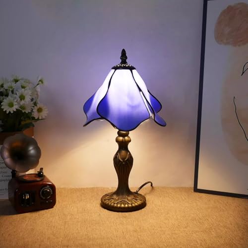 Tokira Tiffany Lampe de table vintage en verre coloré, 6 pouces Le violet de Abat - jour, Lampe de chevet dans la chambre, Petite lampe de nuit pour restaurant [sans ampoule]