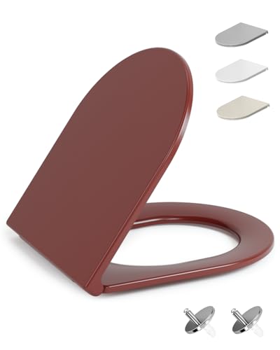 Brigtviee SièGe De Toilette Coloré,Abattant WC Universel Clipsable,Lunette De Toilettes Frein De Chute Forme O,Nettoyage Facile,Montage par Le Haut, DéMontage Facile,Round,Rouge