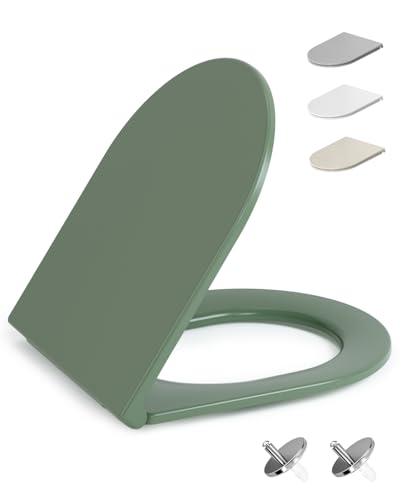 Giural Abattant WC avec Frein De Chute (Ovale, Duroplast), Premium Lunette WC Antibactérien, WC Abattant Clipsable, Lunette WC Frein De Chute, Fixation Abattants WC,Vert