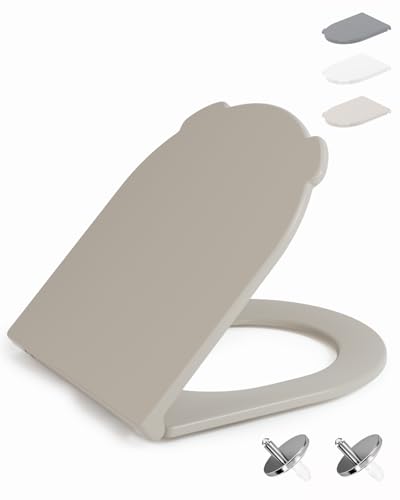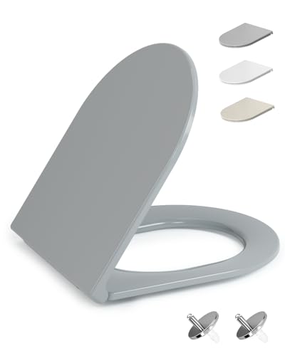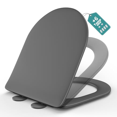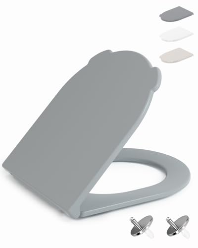 MEEJEE Abattant WC avec Frein de Chute, Abattant WC D Forme Gris en Duroplast, Lunette Wc Frein de Chute, Siège Toilette Universel Clipsable Pour Famille, Couvercle Toilettes WC