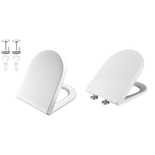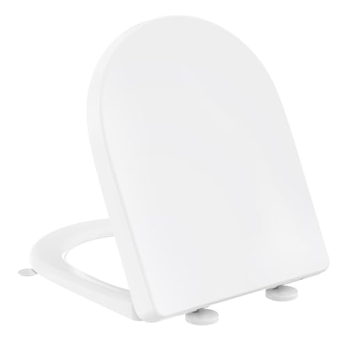 SREWOHS PRO Abattant WC avec Frein de Chute, Cuvette Toilette Forme D, Lunette WC avec Fermeture en Douceur, Lunette Toilette Facile à Nettoyer, Toilet Seat Softclose, Matière en Duroplast, Blanche