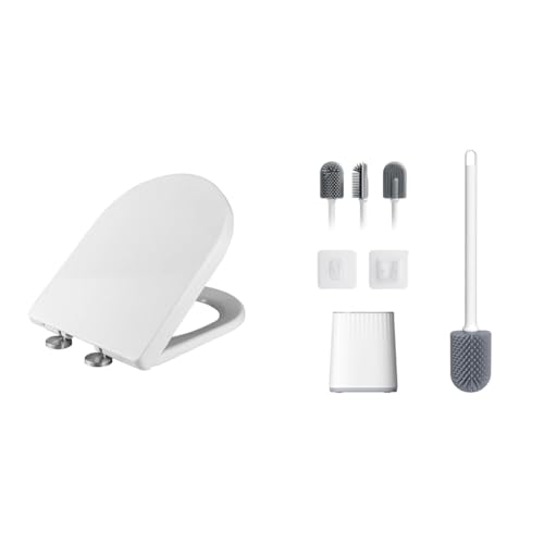Ibergrif M41002, Abattant WC Forme O, Cuvette Toilette avec Frein de Chute, Lunette WC avec Fermeture en Douceur & M34151-2, Brosse WC Silicone - Brosse Toilette et Supports, Anti-Goutte