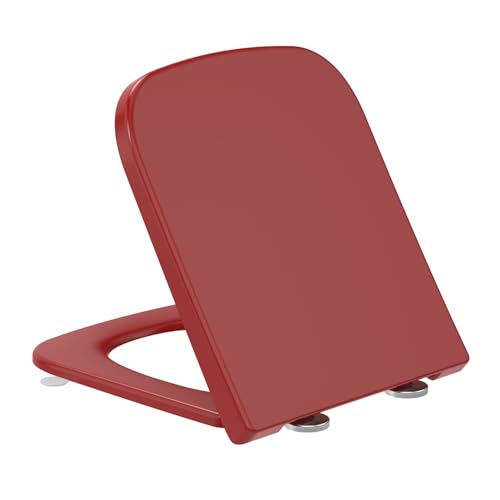 YEAUPE PRO Abattant WC Forme carrée[COURT], Cuvette Toilette avec Frein de Chute, Lunette WC Blanche, siège de toilette universel de forme carrée, testée jusqu'à 150kg, Rouge 42,2 * 36,2 * 4,4CM