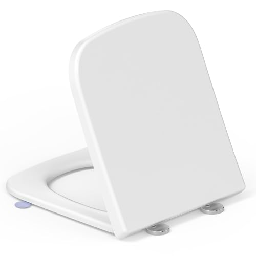 DRYFAL Abattant WC Rectangulaire, Abattant Carré WC, Cuvette Toilette avec Frein De Chute, Siège De Toilette avec Charnières À Fermeture Lente Et À Dégagement Rapide,04F