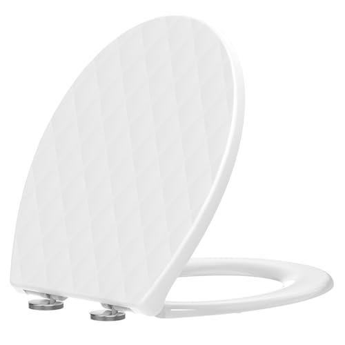 SREWOHS PRO Lunette WC Ovale en PP, Abattant Toilette Soft Close Double, Motif 3D Effet Cuir, Anti-UV, Quick Release, Fixation Top-Mount avec Vis 7 cm, Blanc