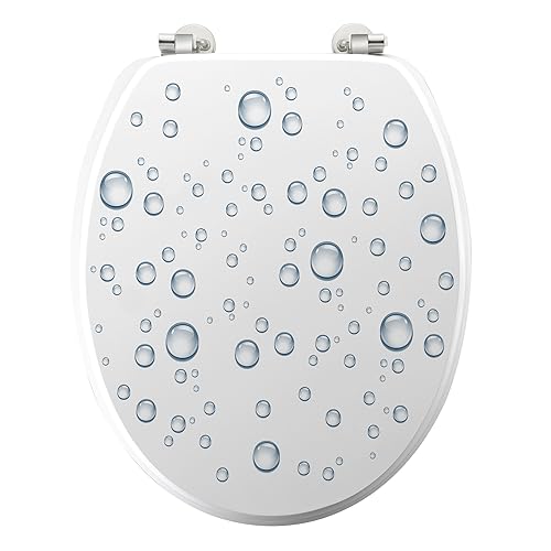douceur d'intérieur, Abattant WC à Charnières Métal (37,5 x 46 cm) Bubble Bleu, MDF Imprimé