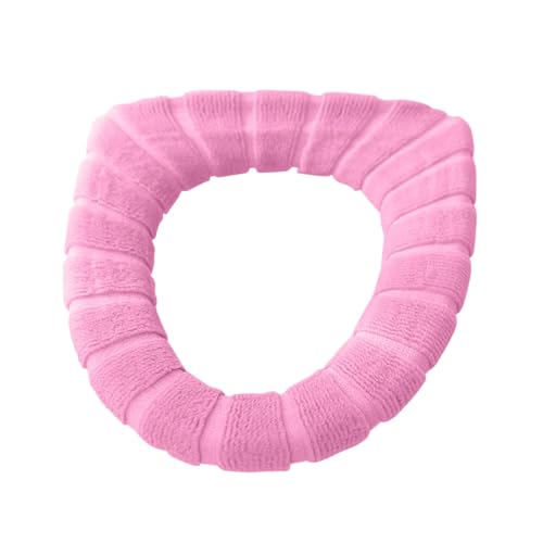 DSFIHJO Abattant WC Chauffant 1 Housse de siège Toilette Universelle Chaude d'hiver, Accessoires Salle Bain lavables, en Forme O tricotée Couleur Unie Housses de siège en Tissu(Pink)