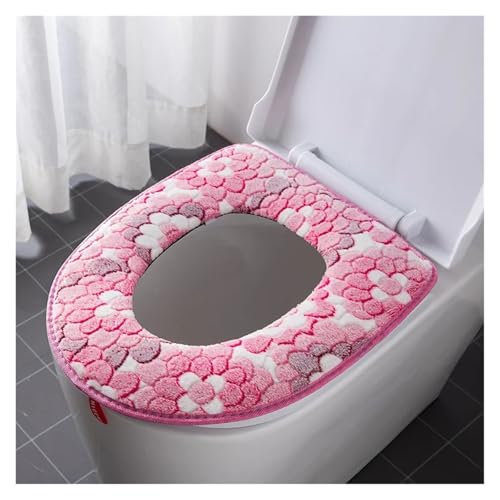 DSFIHJO Abattant WC Chauffant Housse de siège Toilette Souple et imperméable en Forme O for Salle Bain, Tapis Lavable, Coussin for, Bidet, Accessoires Housses de siège en Tissu(MTQ-O-Pink)