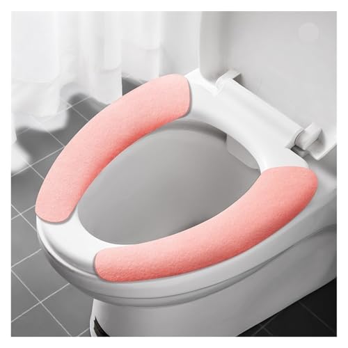 DSFIHJO Abattant WC Chauffant Housse de Toilette en Mousse autocollante Lavable, Salle Bain étanche, réutilisable, Accessoires ménagers Quatre Saisons Housses de siège en Tissu(Pink)