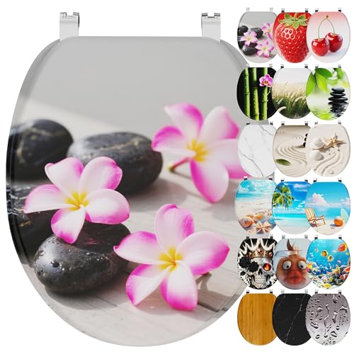 Ribelli Abattant de WC avec système d'abaissement automatique - Couvercle de toilette en forme de O - Nombreux motifs - Montage facile - Facile à nettoyer - Environ 46 x 37 cm - Motif floral