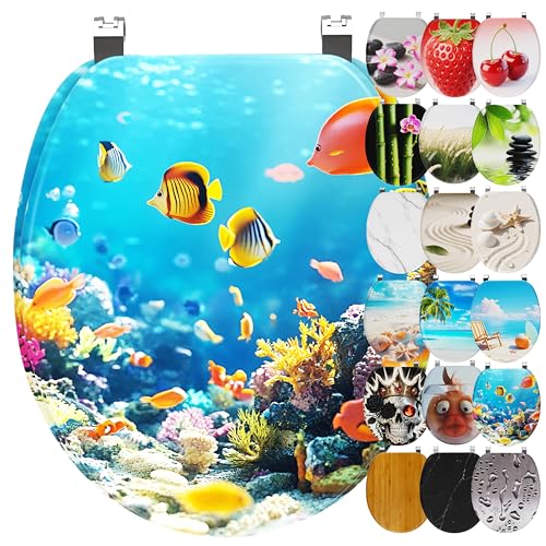Ribelli Abattant de WC avec système d'abaissement automatique - En forme de O - De nombreux motifs - Montage facile - Facile à nettoyer - Environ 46 x 37 cm - Poissons océan