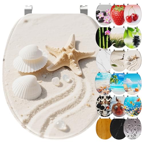 MSV - Abattant WC Motif Étoile de Mer - MDF/Acier Inoxydable - 42,5 x 36,5 x 1,6 cm - Fixation Robuste - Design Décoratif pour Salle de Bain - Facile à Nettoyer