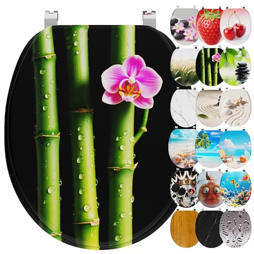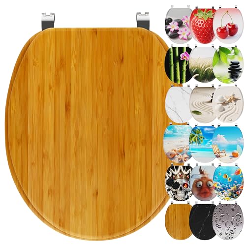 Ribelli Abattant de WC avec système d'abaissement automatique - En forme de O - De nombreux motifs - Montage facile - Facile à nettoyer - Environ 46 x 37 cm - Motif bambou