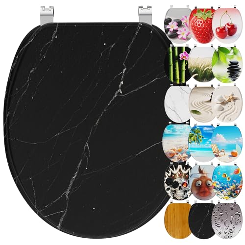 Ribelli Abattant de WC avec système d'abaissement automatique - Couvercle de toilette en forme de O - Nombreux motifs - Montage facile - Facile à nettoyer - Environ 46 x 37 cm - Noir marbre