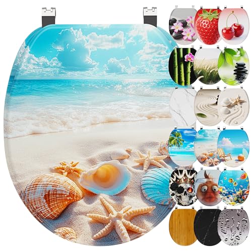 Ribelli Abattant de WC avec système d'abaissement automatique - En forme de O - De nombreux motifs - Montage facile - Facile à nettoyer - Environ 46 x 37 cm - Motif coquillages et plage