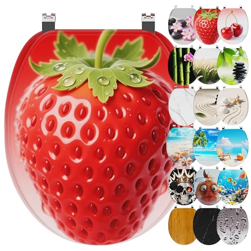 Ribelli Abattant de WC avec système d'abaissement automatique - Couvercle de toilette en forme de O - Nombreux motifs - Montage facile - Facile à nettoyer - Environ 46 x 37 cm - Fraise