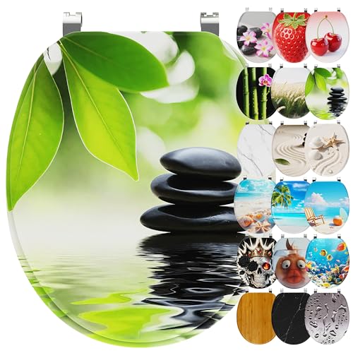 Ribelli Abattant de WC avec système d'abaissement automatique - Couvercle de toilette en forme de O - Nombreux motifs - Montage facile - Facile à nettoyer - Environ 46 x 37 cm - Motif pierre de