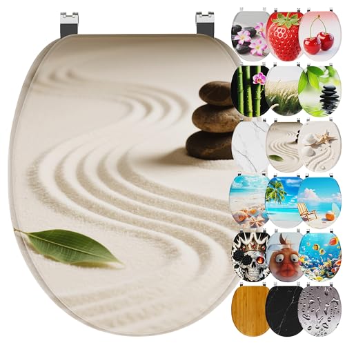 Ribelli Abattant de WC avec système d'abaissement automatique - En forme de O - De nombreux motifs - Montage facile - Facile à nettoyer - Environ 46 x 37 cm (pierre du désert)