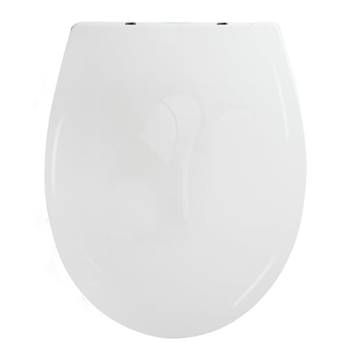 WENKO Abattant WC Valencia | Lunette Toilettes avec Fixation en Acier INOX | Lunette WC Facile à Nettoyer | Résistante à l'humidité |Forme Ovale | MDF | 37,5x43,5 cm | Blanc