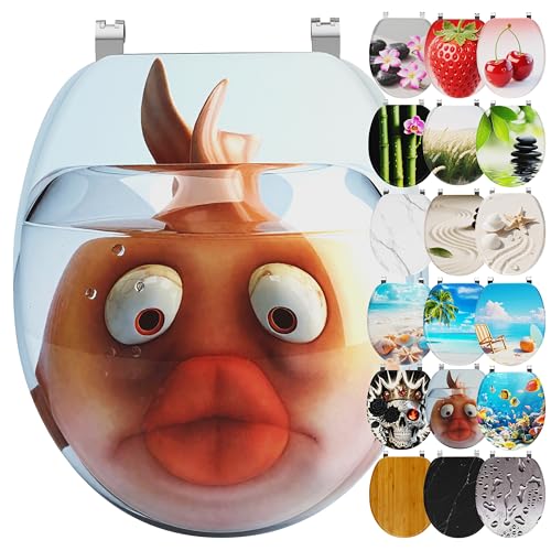 Ribelli Abattant de WC avec système d'abaissement automatique - Couvercle de toilette en forme de O - Nombreux motifs - Montage facile - Facile à nettoyer - Environ 46 x 37 cm - Poisson rouge