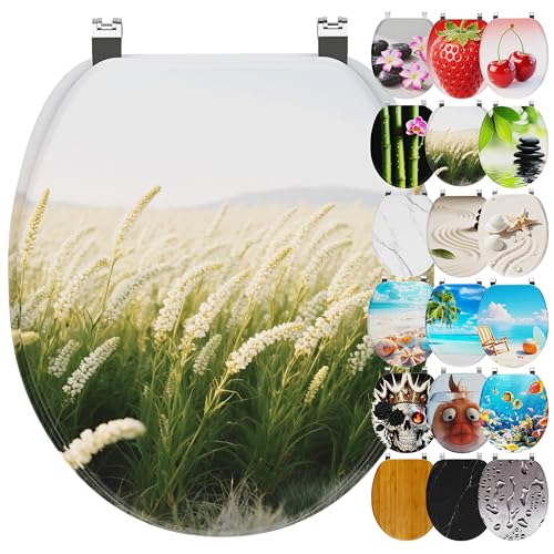 Ribelli Abattant de WC avec système d'abaissement automatique - Couvercle de toilette en forme de O - Nombreux motifs - Montage facile - Facile à nettoyer - Environ 46 x 37 cm - Roseau