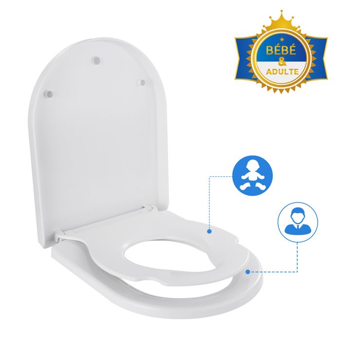 Wttfc Abattant WC Familial avec Frein De Chute,Lunette WC avec Cuvette Toilette Enfant,Forme D,SièGe De Toilette en PP pour Adultes Et Enfants,Montage Facile,Capacité De Charge,Blanc
