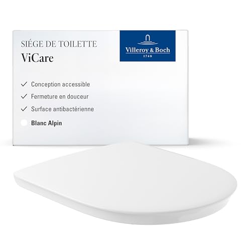 Villeroy & Boch ViCare abattant WC adapté personnes mobilité réduite Blanc AntiBac - Avec ferm. auto. - Abattant toilettes amov. incass. Duroplast - Couv. waters antibact. forme D - Pièce rechge orig.