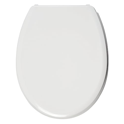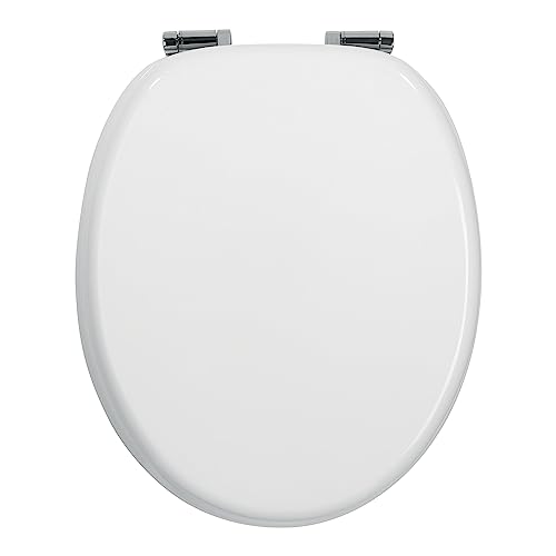 WENKO Abattant WC Valencia | Lunette Toilettes avec Fixation en Acier INOX | Lunette WC Facile à Nettoyer | Résistante à l'humidité |Forme Ovale | MDF | 37,5x43,5 cm | Blanc