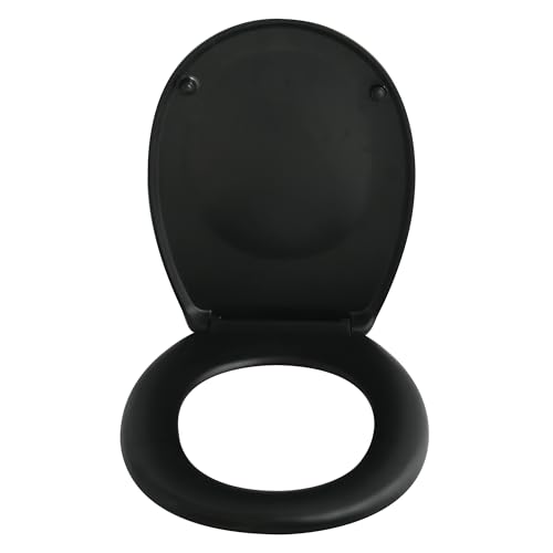 Spirella - Abattant WC Thermo Dur Neela - Charnières en ABS Chromé - Couvercle WC avec Frein de Chute - Fermeture Slow-Close - 44 x 37 x 3 cm - Noir