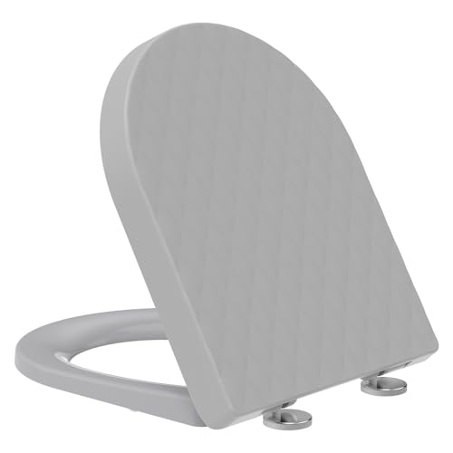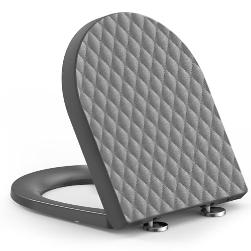 YEAUPE PRO Abattant WC Forme D Motif Losange Gris, Cuvette Toilette avec Frein de Chute, Lunette WC avec Fermeture en Douceur, Lunette de Toilette Universelle et Charnière Réglable, 43,5 * 36,2 CM