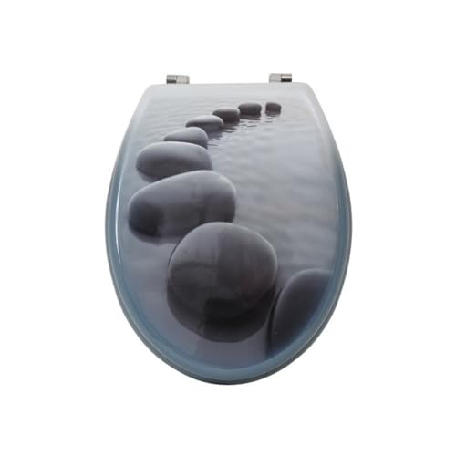 MSV Abattant WC MDF Chemin DE Galets Gris - Charnières INOX