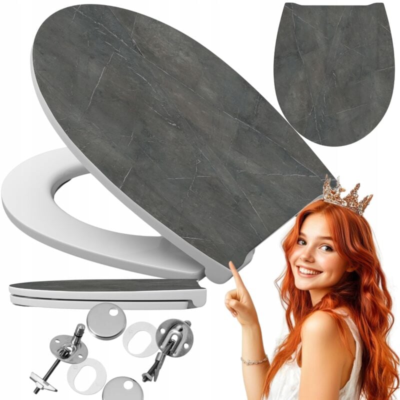 Abattant WC universel marbre gris – frein de chute, antibactérien, ovale