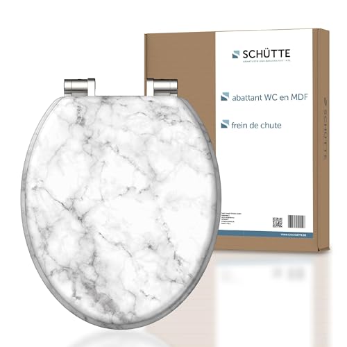SCHÜTTE Marmor Stone Abattant WC en MDF avec frein de chute Blanc/gris