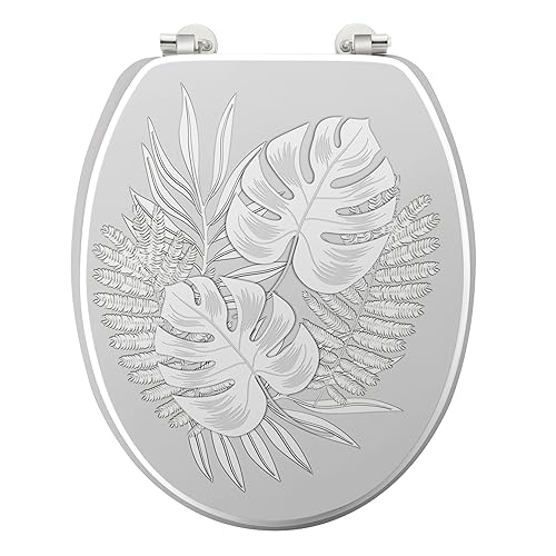 douceur d'intérieur, Abattant WC à Charnières Métal (37 x 47 cm) Amber Gris, MDF Imprimé