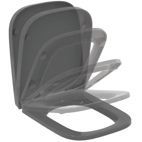Ideal Standard i.life B Abattant WC, forme angulaire, Siège de toilettes avec frein de chute et option de libération rapide, en duroplast robuste – Gris (360x450x45 mm)