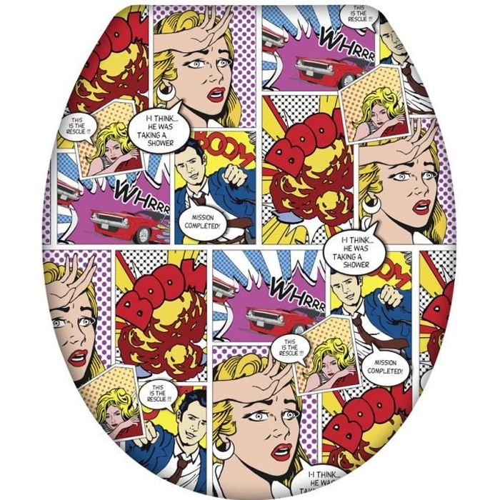 WENKO Abattant WC Original Pop Art | Abattant WC avec Frein de Chute et Fixation INOX | Duroplast antibactérien | Usage fréquent (Magasin, Cabinet médical…) | 38 x 45 cm | Multicolore