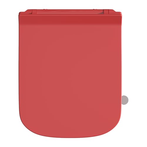 SREWOHS PRO Abattant de WC rectangulaire avec système d'abaissement automatique Duroplast avec fermeture rapide et couvercle de toilette amovible Softclose Rouge 42,5 x 34,5 cm