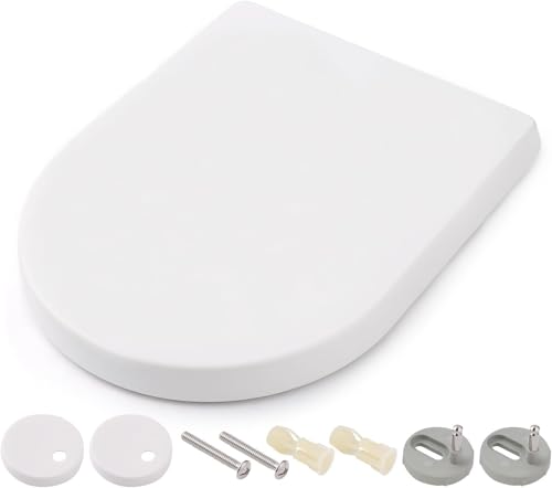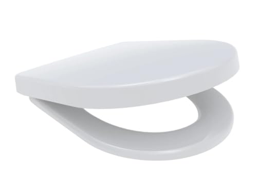 Abattant WC universel Himimi Fermeture amortie Abattant WC avec crochet rapide, montage rapide en plastique antibactérien blanc, en forme de D (450 x 361 x 53 mm)