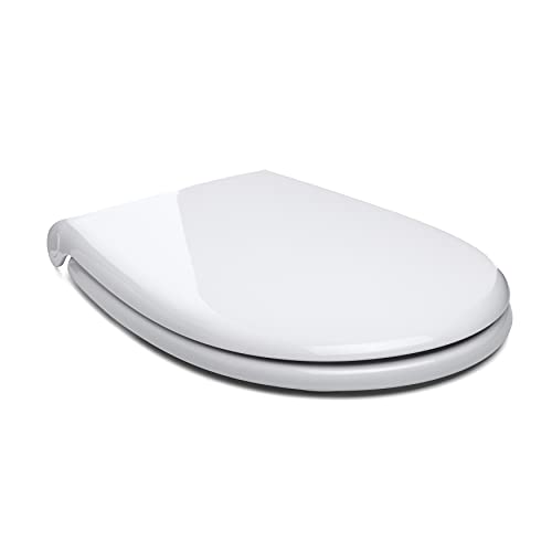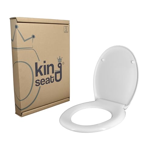 King Seat Abattant de WC universel, forme ovale, urée thermodurcissable, antibactérien, facile à installer, déverrouillage rapide, fermeture ralentie, blanc