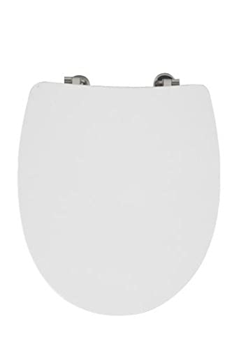 WENKO Abattant WC Valencia | Lunette Toilettes avec Fixation en Acier INOX | Lunette WC Facile à Nettoyer | Résistante à l'humidité |Forme Ovale | MDF | 37,5x43,5 cm | Blanc