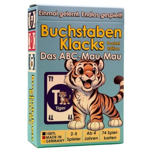 Lettres Klacks - Pocket Edition (Design Tigre) : Le Mau Mau ABC avec Lettres et Animaux, Un Jeu éducatif pour Les Enfants à partir de 4 Ans